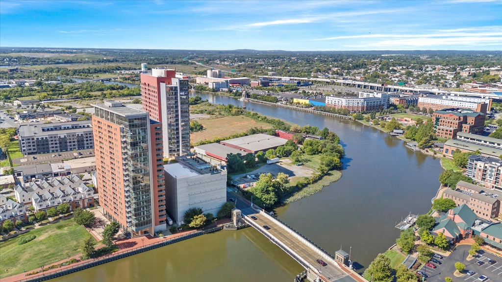 Welcome to luxury carefree living at its finest in this premium corner unit located in the heart of the riverfront in Wilmington, DE. This stunning and sought after end unit, 2-bedroom, 2-bathroom condominium offers a delightful blend of style, comfort, and convenience. Upon entering, you'll be immediately captivated by the abundance of natural light flowing through the floor-to-ceiling windows, providing breathtaking views of the picturesque river, waterfront shops, and the twinkling lights of the city. The covered balcony (with new screen slider door-$1400-) provides a serene space to relax and enjoy the beautiful surroundings. The open floorplan seamlessly combines the living, dining, and kitchen areas: ideal for entertaining family and friends. The beautiful brand new flooring is 7" wide hickory LVP floors- scratch and water proof ($15,000). The gourmet kitchen is a chef's dream, showcasing top-of-the-line stainless steel Viking and Sub-Zero appliances, granite countertops, tile backsplash, slow-close 42" cabinets with added pull-outs professionally done by Shelf Genie ($4500) complemented by an eat-in breakfast bar. The adjacent dining room features a wall of windows, creating an inviting atmosphere for enjoying meals. Both Bedrooms offer stunning sunrise views over the Delaware River and include black-out auto shades complete with remotes ($6000). The spacious owner's bedroom boasts two large closets including custom, lighted, built-in storage with a locked jewelry drawer. The ensuite owner's bath has double sinks, a soaking/spa tub, tiled shower and new rain showerhead faucet. The guest bedroom features more custom built-in shelves (both bedroom closets were done by CA closets $3000) and is conveniently located next to the 2nd full bathroom. Additional highlights of this sought-after end unit include a laundry area with built-in shelves and Bosch washer/dryer. Stay active with access to two fully equipped fitness centers or unwind at the community 9th floor rooftop, saltwater pool with stunning city views. Outdoor entertaining spaces and a multi purpose room provide the perfect setting for social gatherings. This home has 2 coveted deeded parking spaces in the covered and secure parking garage. The condo fee covers water, sewer, trash, 24/7 security and concierge services, amenities and maintenance of building. Located within a short walking distance to shopping, parks, popular restaurants, entertainment venues, the Amtrak RR station and a quick drive finds access to I95 and local area hospitals. This lovely unit offers the epitome of luxury and a truly carefree lifestyle. The River Towers has recently been recognized as a GOLD STAR COMMUNITY for excellence in management, financial stability and quality of life. Don't miss your chance to experience the best that Wilmington has to offer!