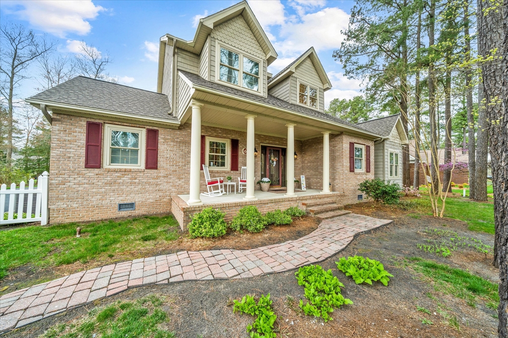 This Custom Built, Charming Cape Cod sits on over a half acre and backs to a beautiful pond view. Located in sought after Cinderberry Estates, this premier home is one to see. From the moment you step in to the foyer, you'll appreciate the very open floor plan. The great room has laminate hardwood flooring, vaulted ceiling and transom windows located above the tasteful gas fireplace that is the focal point of the room. Open to the kitchen and dining area, it is a great home for entertaining guests. The kitchen features gorgeous, custom maple cabinetry; tile flooring; recessed lighting; custom range hood vent; stainless appliances; and Silestone counter tops that give unique depth and color. The main floor also has an office space, nursery/ 2nd office, pretty powder room and 1st floor laundry. But, one of the best features is the main level, huge primary bedroom with hardwood floors, large closets and 2 full baths! Upstairs find a second living area in the loft, 2 additional bedrooms, a hall bath and another room that could easily be converted into a 4th bedroom. The screened porch and paver breezeway takes you to the oversized (26.5' x 24') 2 car garage that hosts a 1/2 bath and a full stairway to an additional storage area. There is also a (14 x 12) shed for storage. From the great room, step through French doors to the back of the home that offers a relaxing oasis with a large deck and view of a pretty pond. The home was just freshly painted with neutral colors. Additional features include a conditioned crawl space, tankless water heater, 2-zone HVAC system, irrigation system, alarm system and a new Roof 2026, large shed and an updated deck!