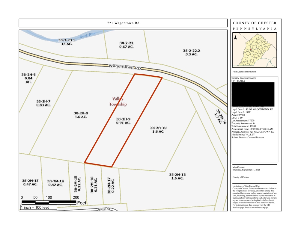 A 0.91-acre wooded parcel located in Valley Township, Coatesville (Chester County), legally described as Lot at 721 Wagontown Rd. This lot presents a unique opportunity for a builder or homeowner seeking privacy and flexibility. With road frontage and nearby residential development, it offers potential for a custom home site or future investment.